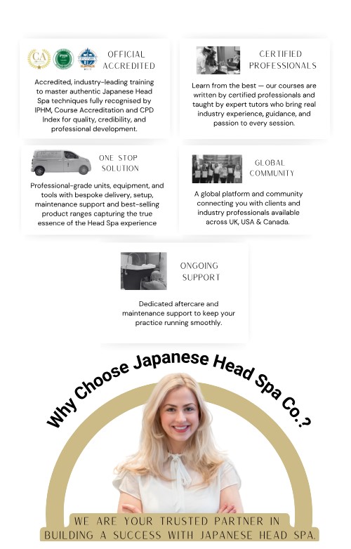 At Japanese Head Spa Co., we specialise in bringing the authentic art of Japanese Head Spa to life—both as a rejuvenating experience for individuals and a powerful business opportunity for professionals. From deeply relaxing treatments to accredited training, premium products, and professional-grade equipment, we provide a complete one-stop solution for everything you need. Whether you’re a spa, salon, independent practitioner, or mobile therapist, our mission is to help you deliver exceptional results, elevate your services, and thrive within this growing wellness trend.